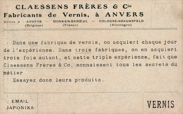 Deux cartes illustrent les usines de vernis Claessens qui avaient un établissement à Mons-en-Barœul. Reproduction recto et verso.